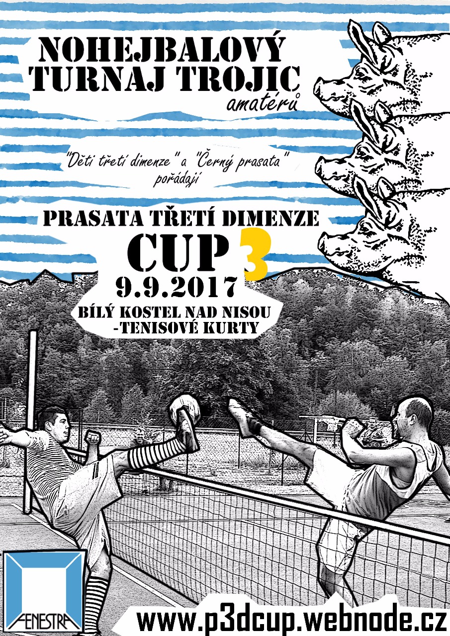 Termínem pro konání již třetího ročníku amatérského nohejbalového turnaje "Prasata třetí dimenze cup 2017" je 9. září 2017. Turnaj se již tradičně uskuteční v obci Bílý Kostel nad Nisou netradičně na jiném místě, a to na tenisových kurtech. (odbočka vlevo při příjezdu do obce od Liberce před...
